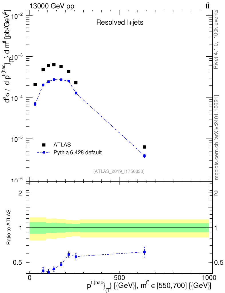 Lines: data, pythia6 6.428 default |