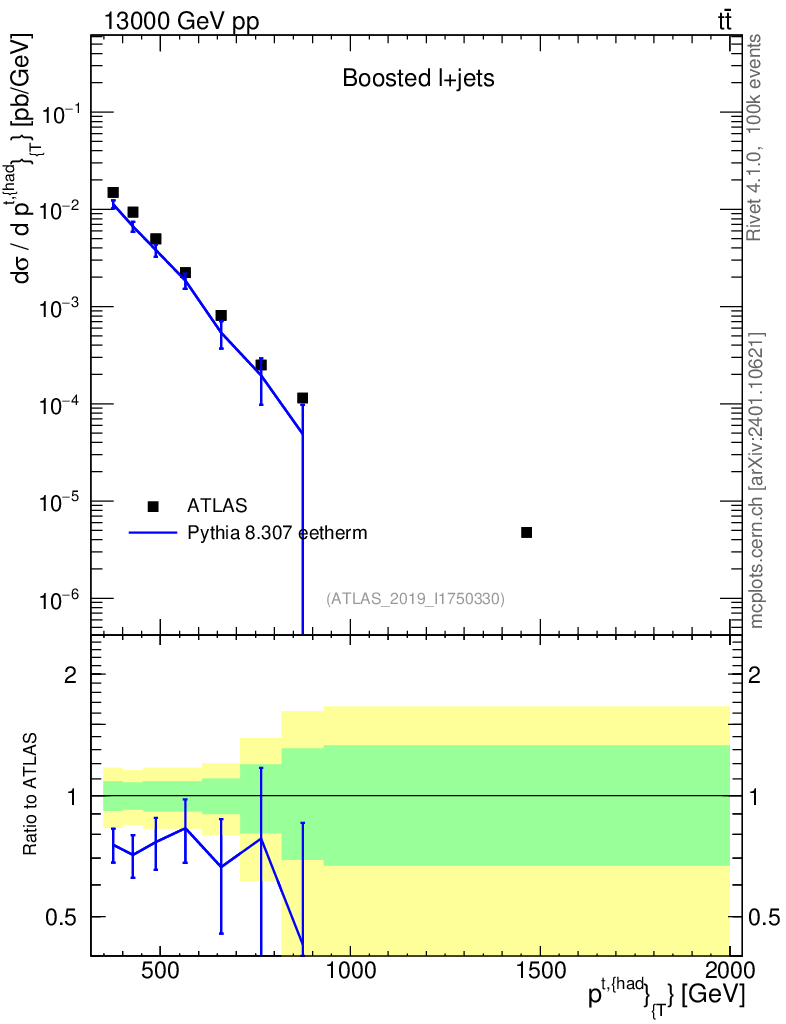 Lines: data, pythia8 8.307 eetherm |