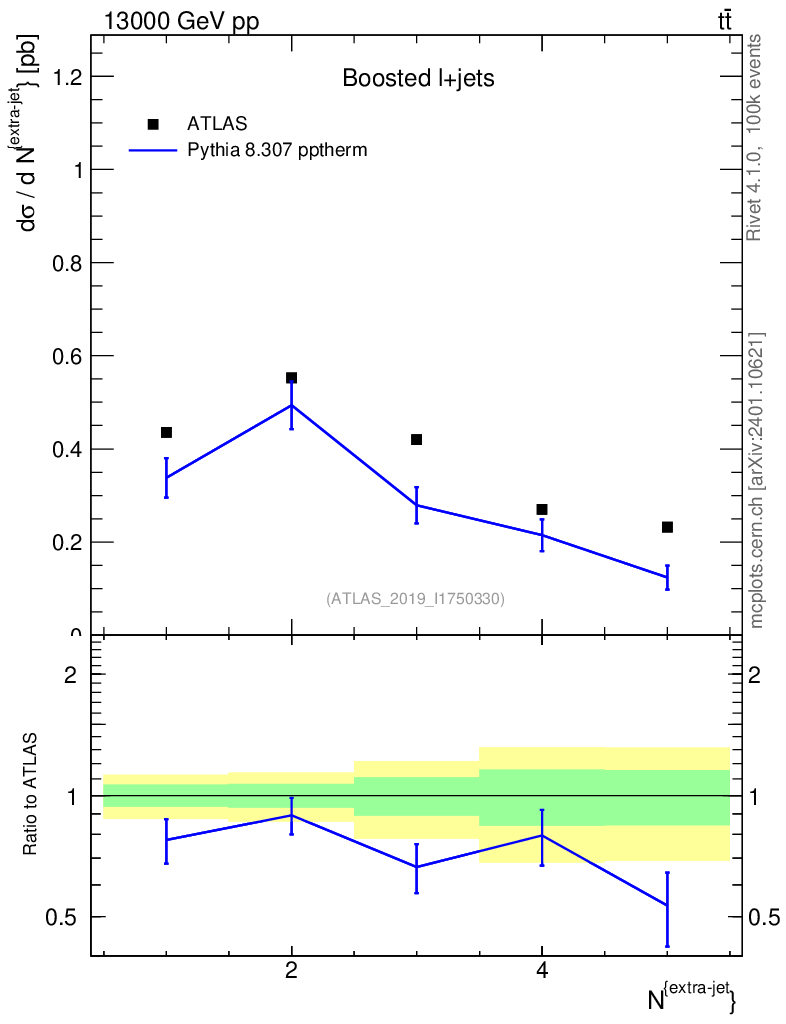 Lines: data, pythia8 8.307 pptherm |