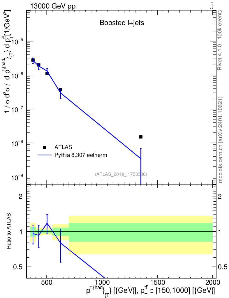 Lines: data, pythia8 8.307 eetherm |