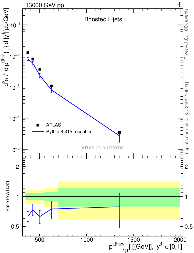 Lines: data, pythia8 8.315 rescatter |