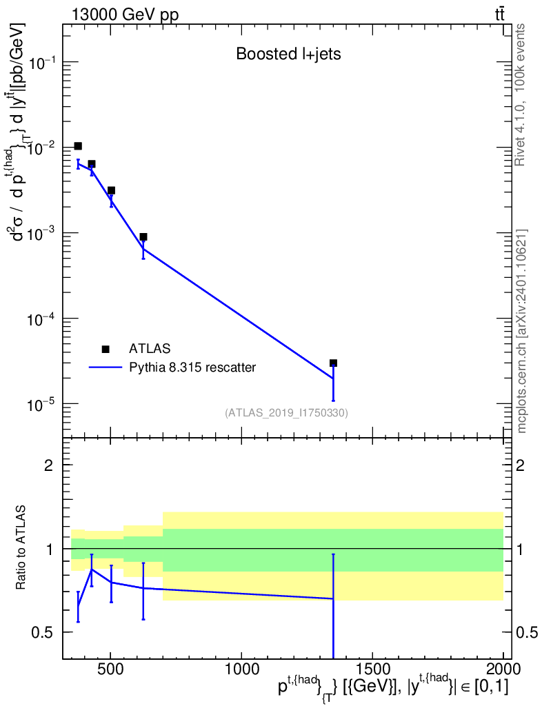Lines: data, pythia8 8.315 rescatter |