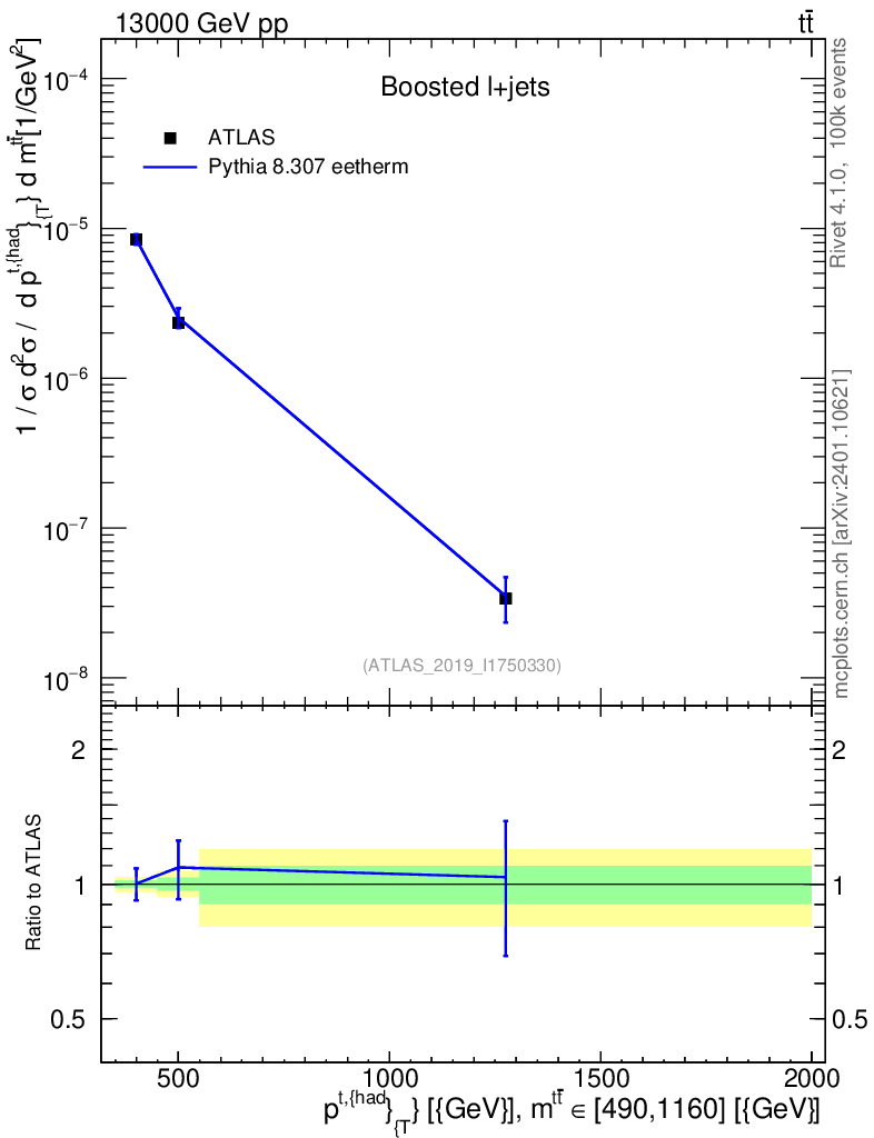 Lines: data, pythia8 8.307 eetherm |
