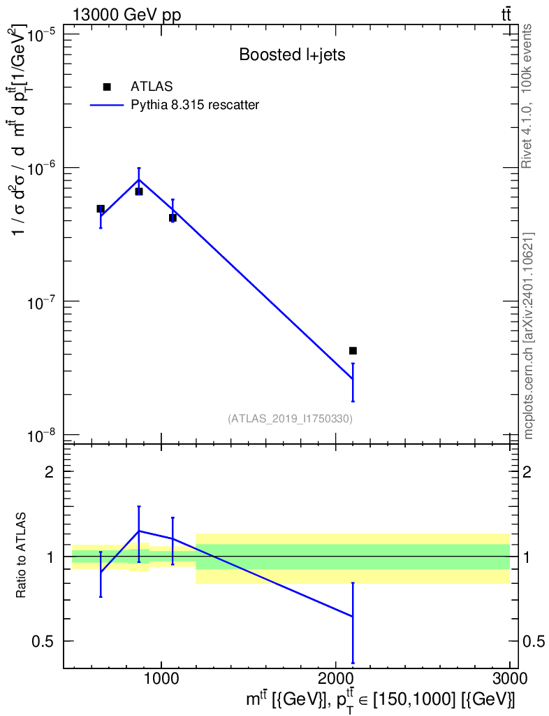 Lines: data, pythia8 8.315 rescatter |