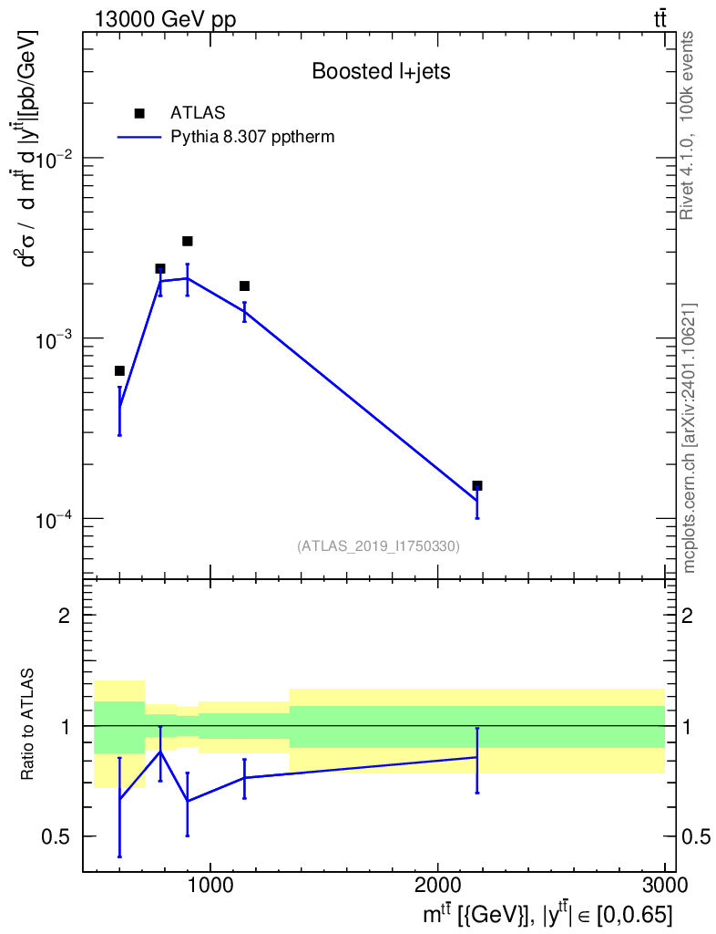 Lines: data, pythia8 8.307 pptherm |