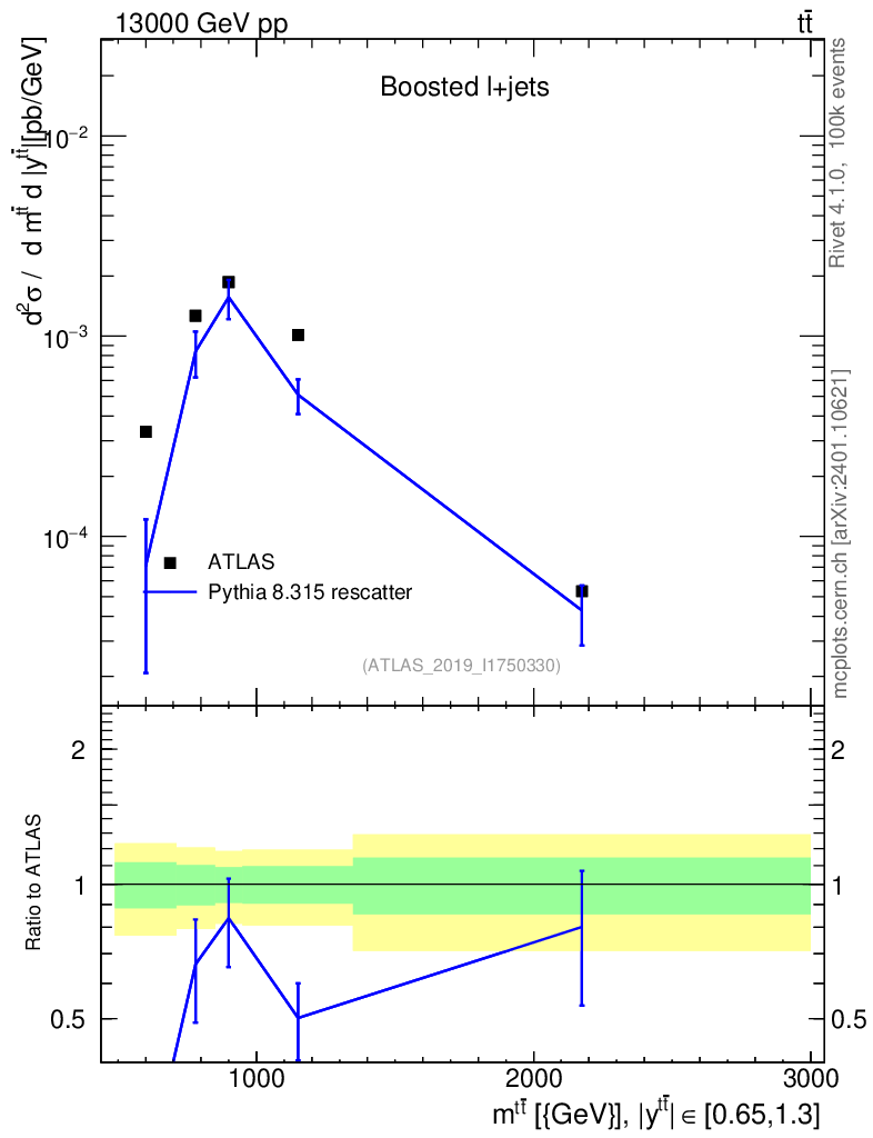 Lines: data, pythia8 8.315 rescatter |