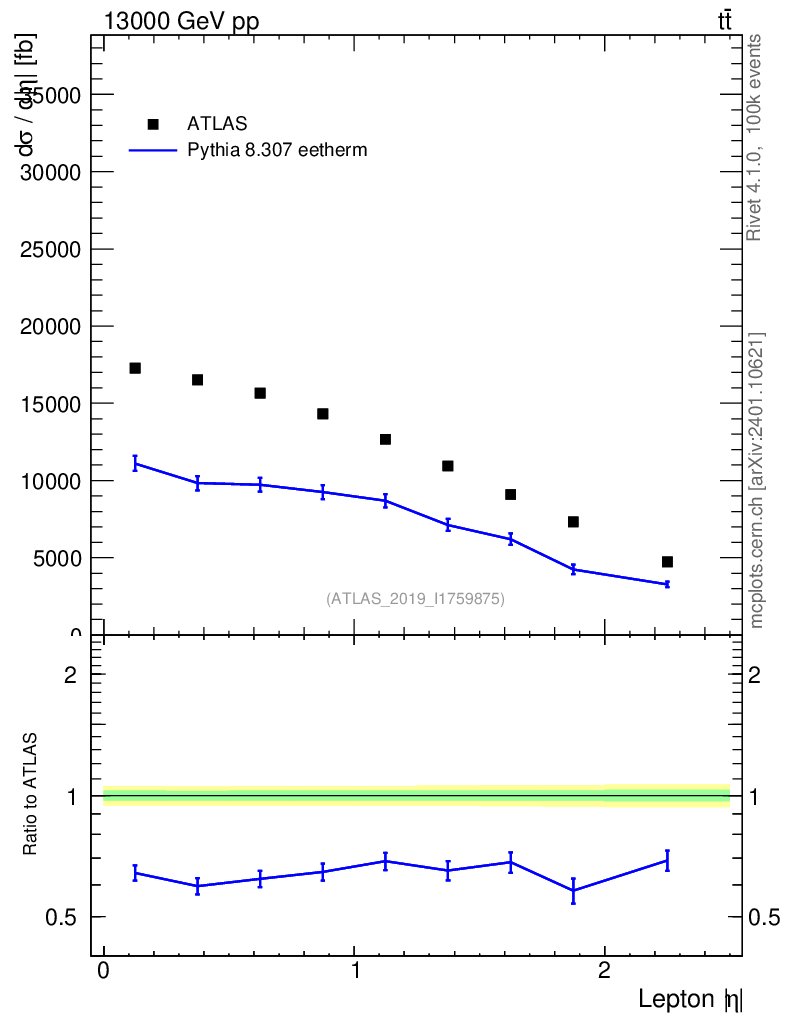 Lines: data, pythia8 8.307 eetherm |