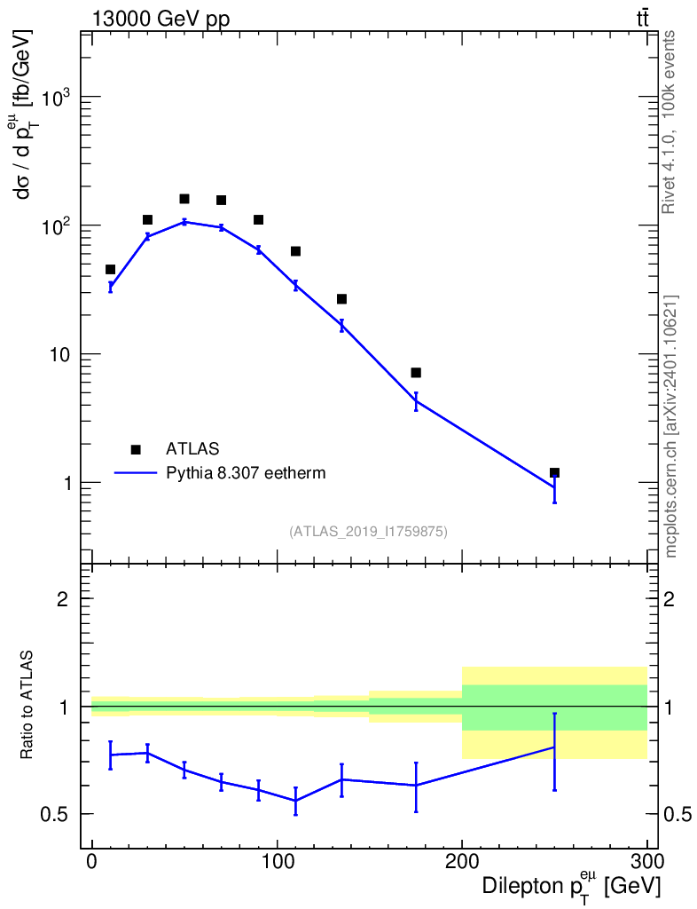 Lines: data, pythia8 8.307 eetherm |