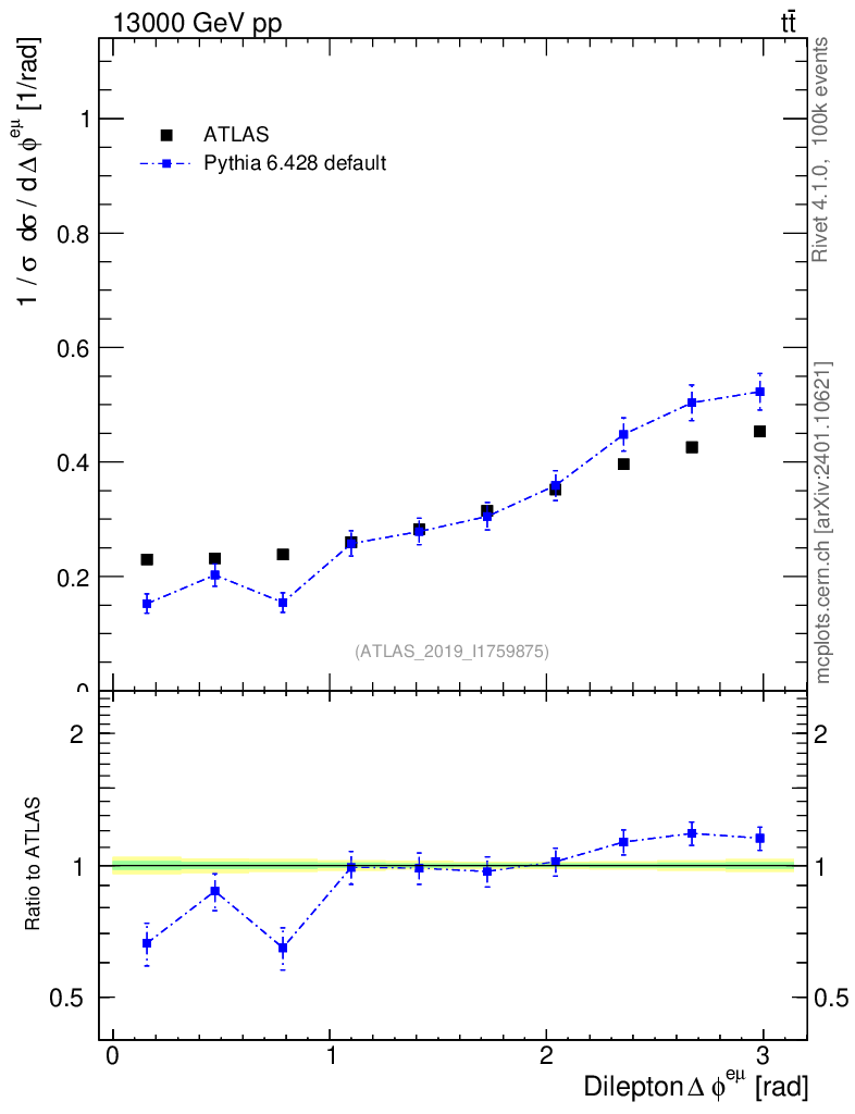 Lines: data, pythia6 6.428 default |