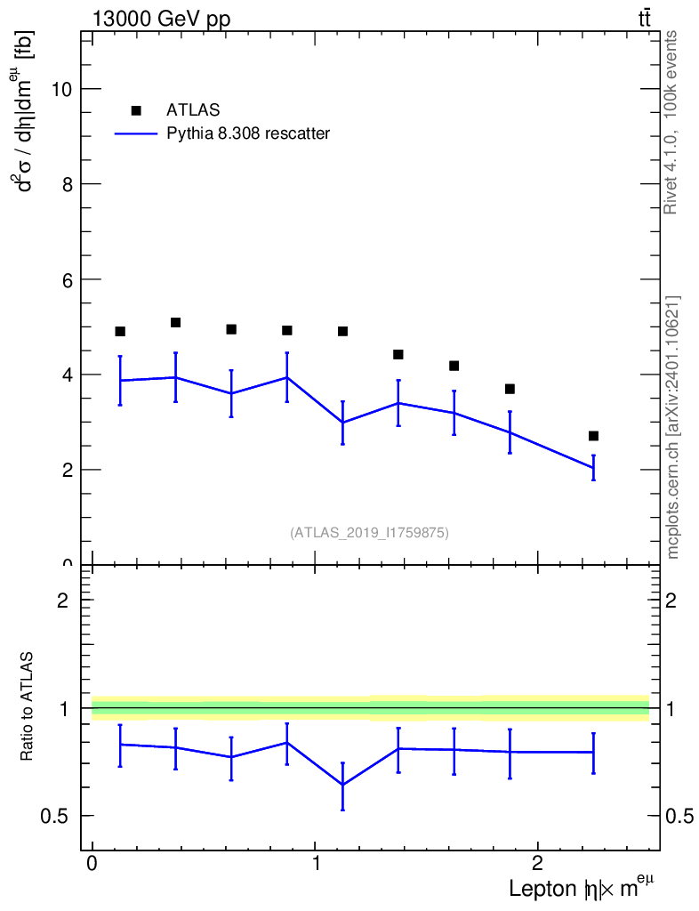 Lines: data, pythia8 8.308 rescatter |