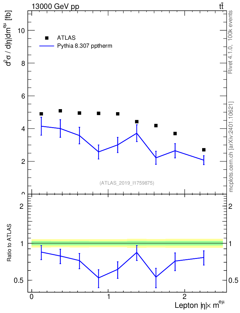 Lines: data, pythia8 8.307 pptherm |