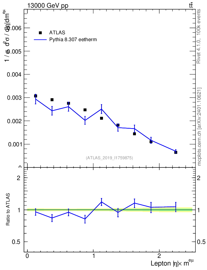 Lines: data, pythia8 8.307 eetherm |