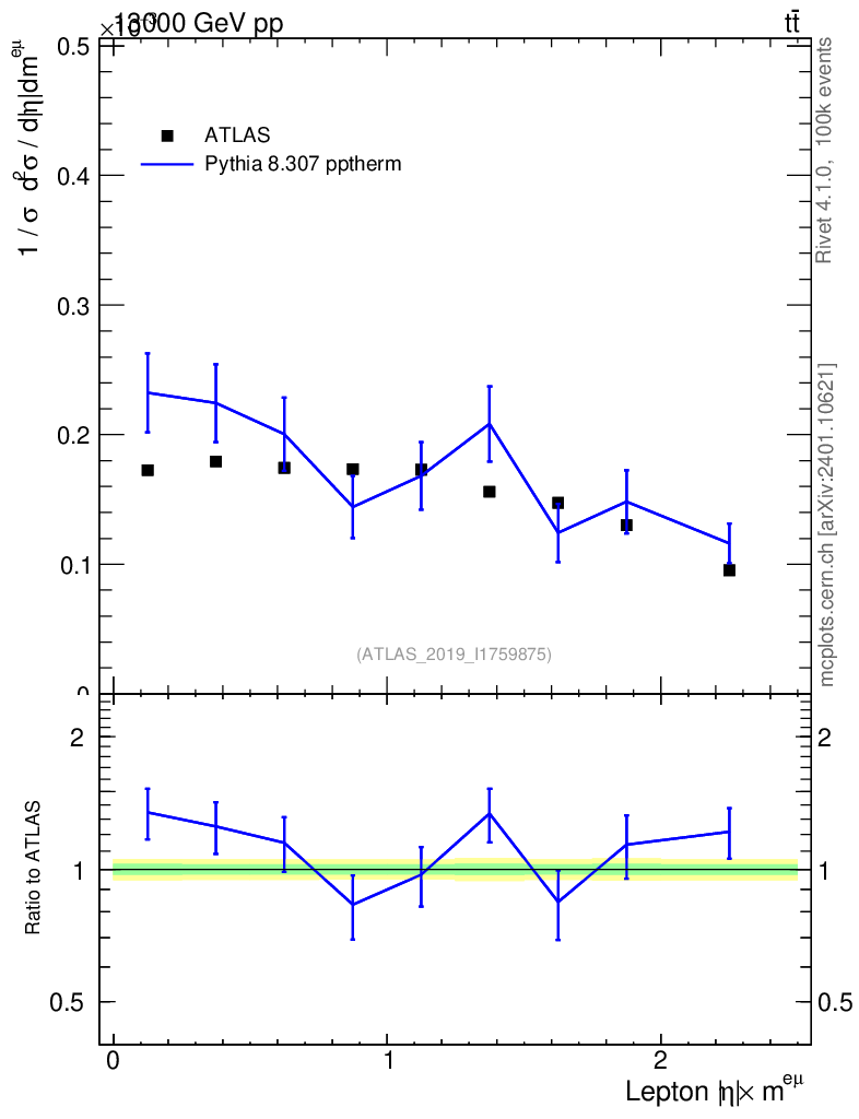 Lines: data, pythia8 8.307 pptherm |