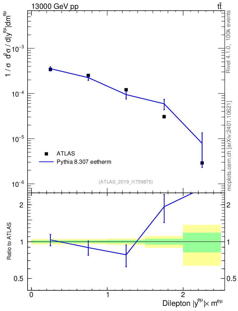 Lines: data, pythia8 8.307 eetherm |