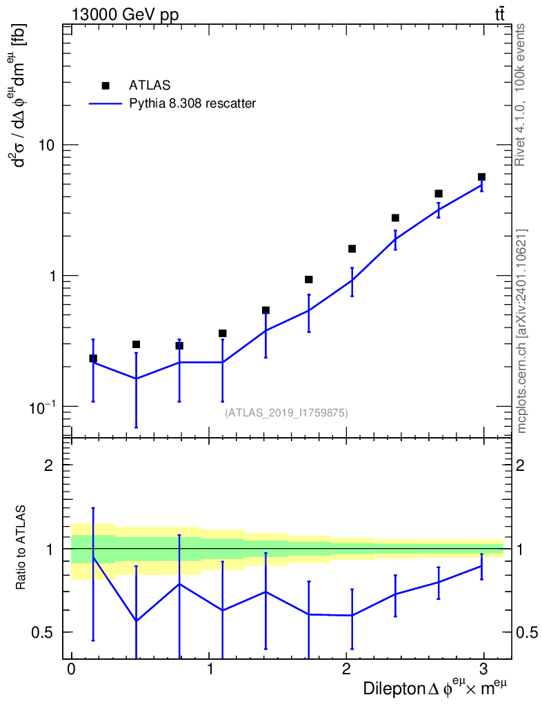 Lines: data, pythia8 8.308 rescatter |