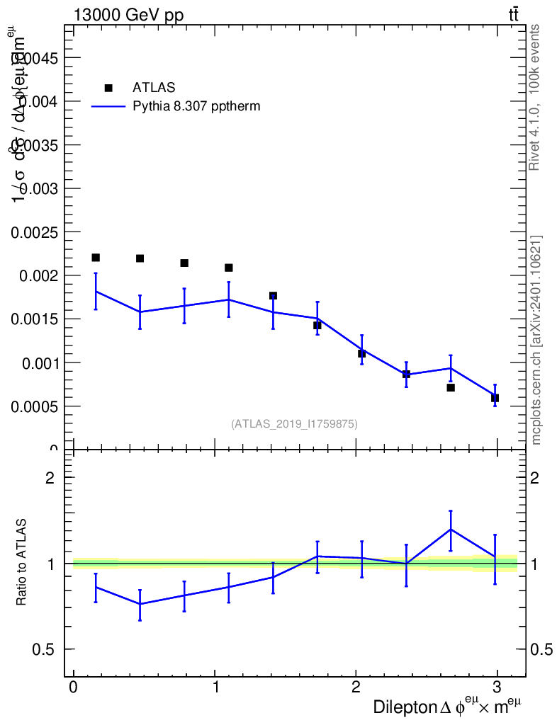 Lines: data, pythia8 8.307 pptherm |