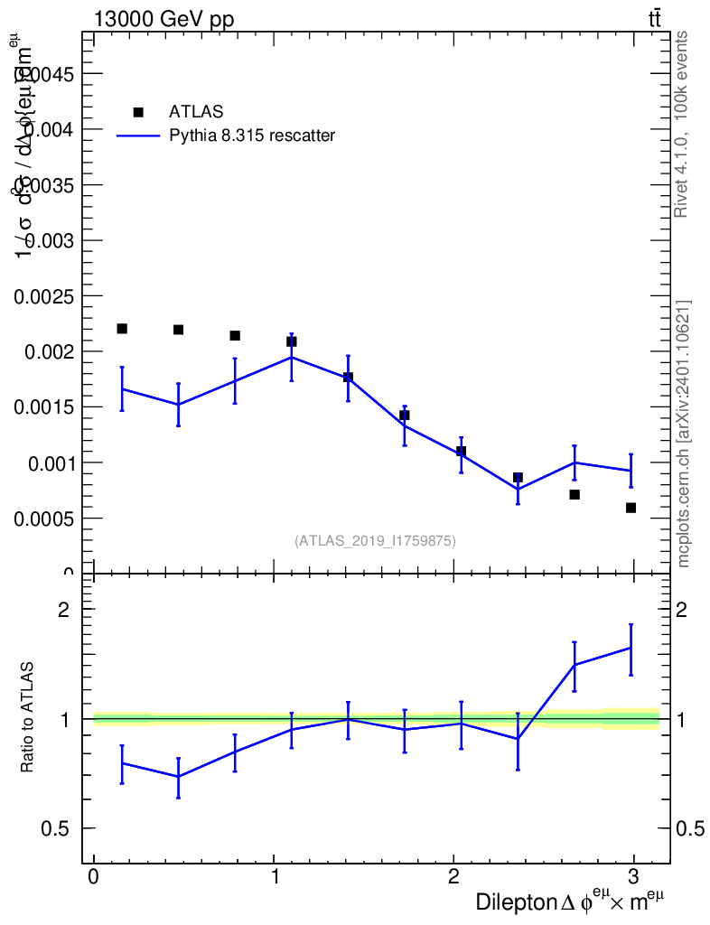 Lines: data, pythia8 8.315 rescatter |