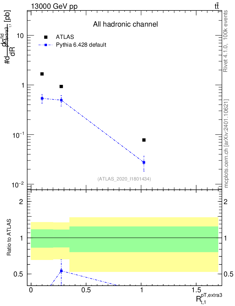 Lines: data, pythia6 6.428 default |