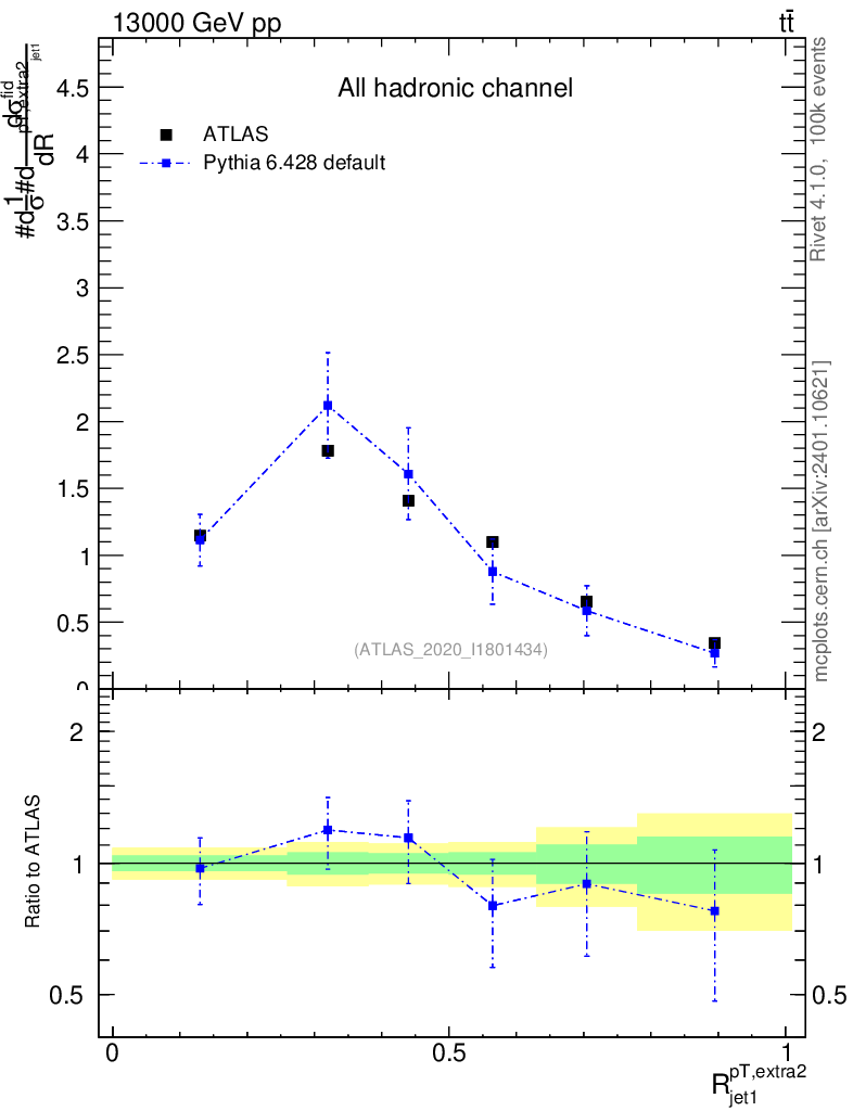 Lines: data, pythia6 6.428 default |
