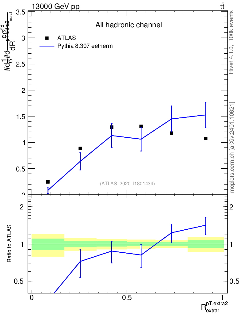Lines: data, pythia8 8.307 eetherm |