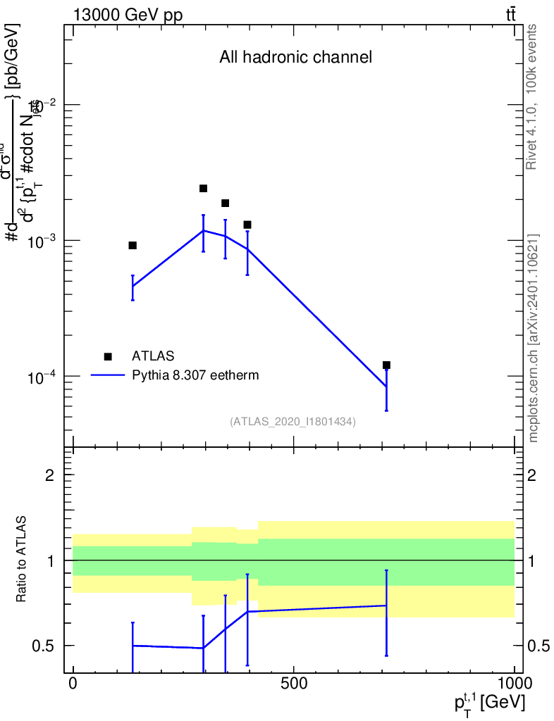 Lines: data, pythia8 8.307 eetherm |