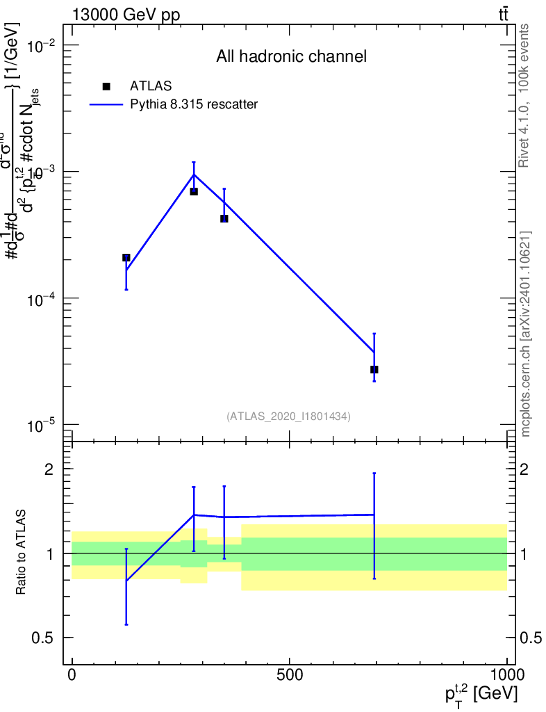 Lines: data, pythia8 8.315 rescatter |