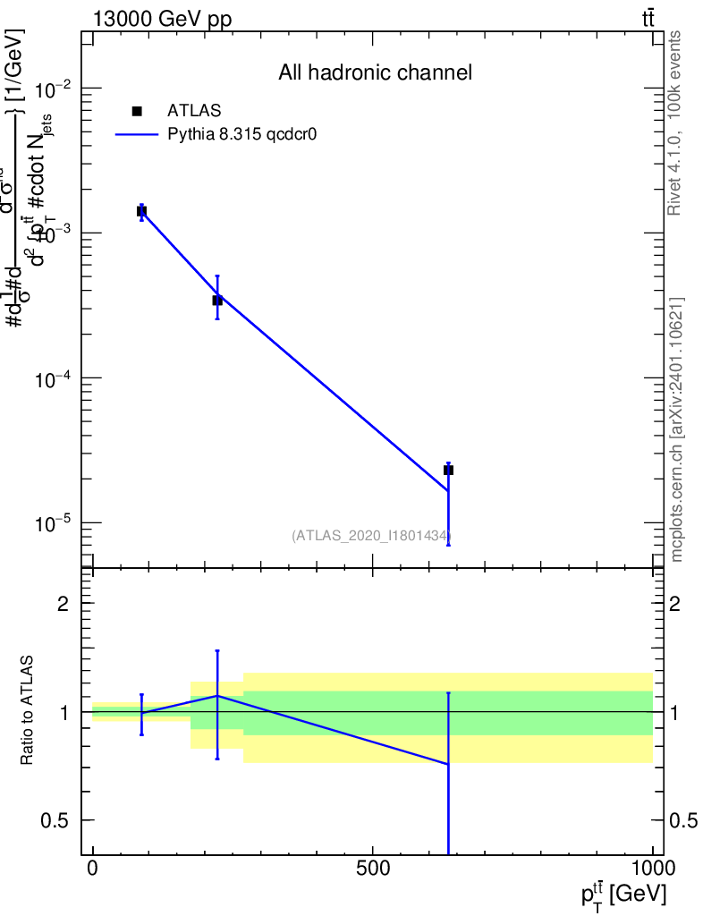 Lines: data, pythia8 8.315 qcdcr0 |