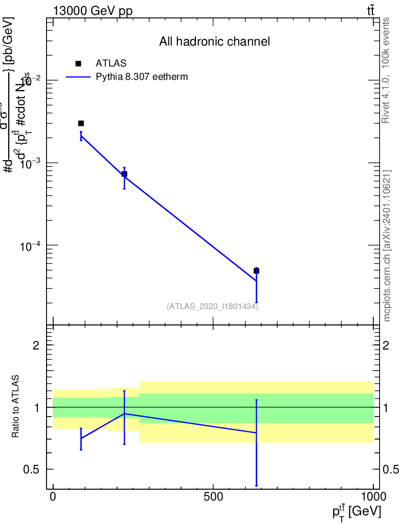 Lines: data, pythia8 8.307 eetherm |