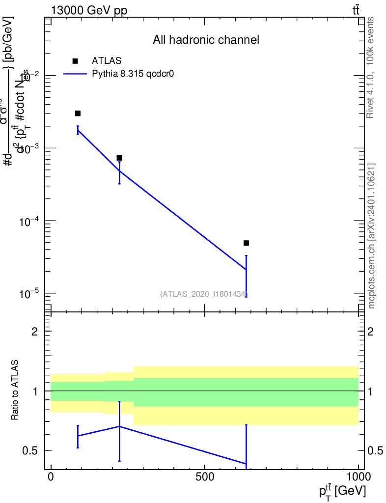Lines: data, pythia8 8.315 qcdcr0 |