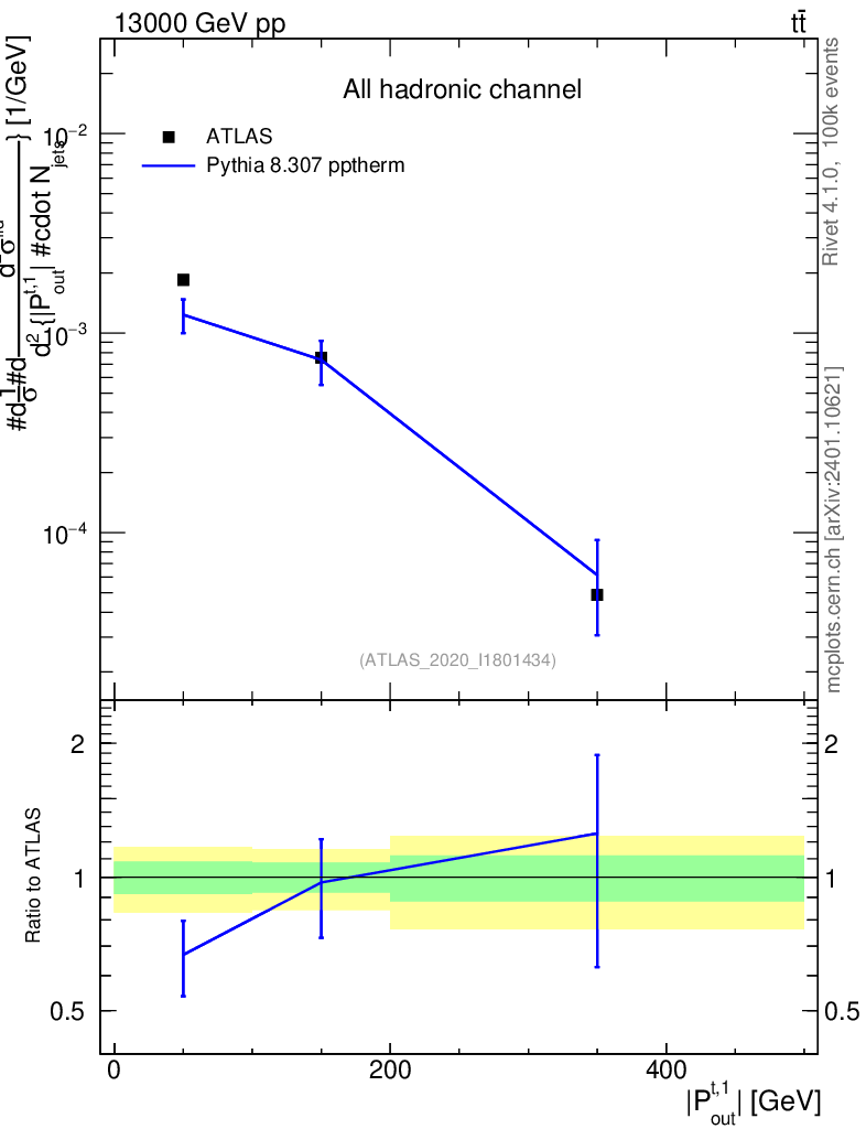 Lines: data, pythia8 8.307 pptherm |