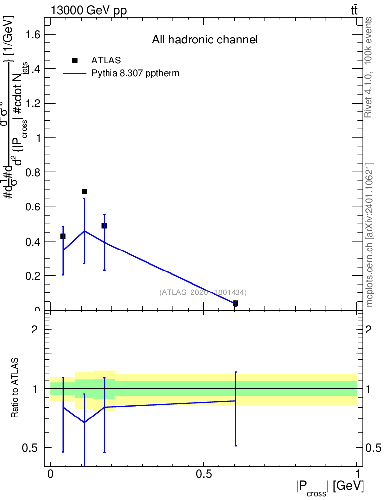 Lines: data, pythia8 8.307 pptherm |