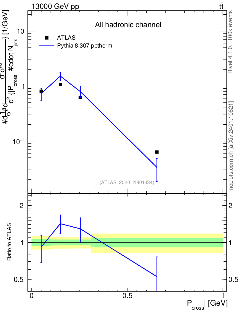 Lines: data, pythia8 8.307 pptherm |