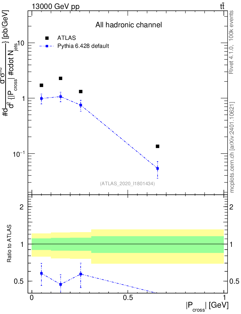 Lines: data, pythia6 6.428 default |