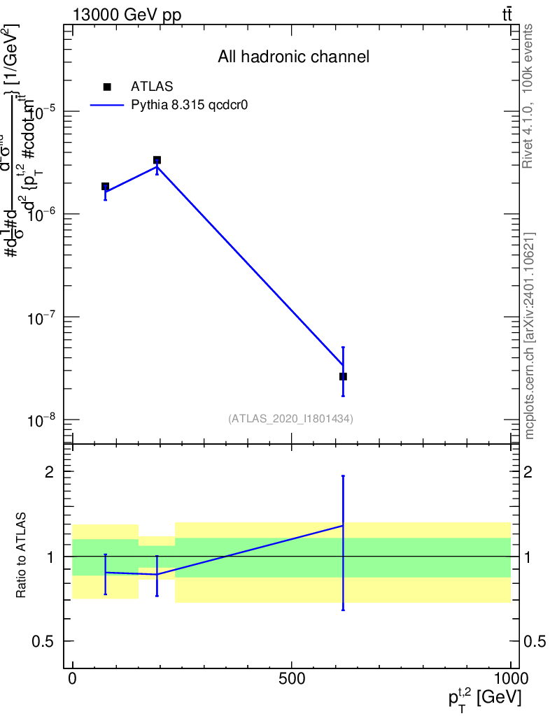 Lines: data, pythia8 8.315 qcdcr0 |