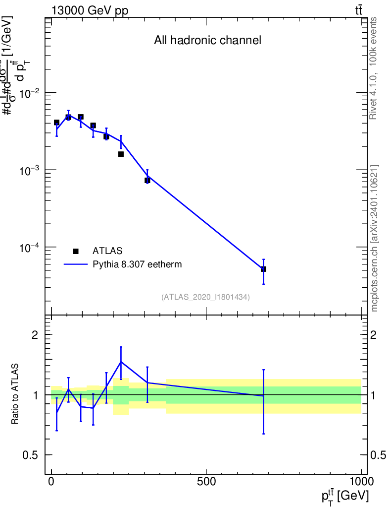 Lines: data, pythia8 8.307 eetherm |