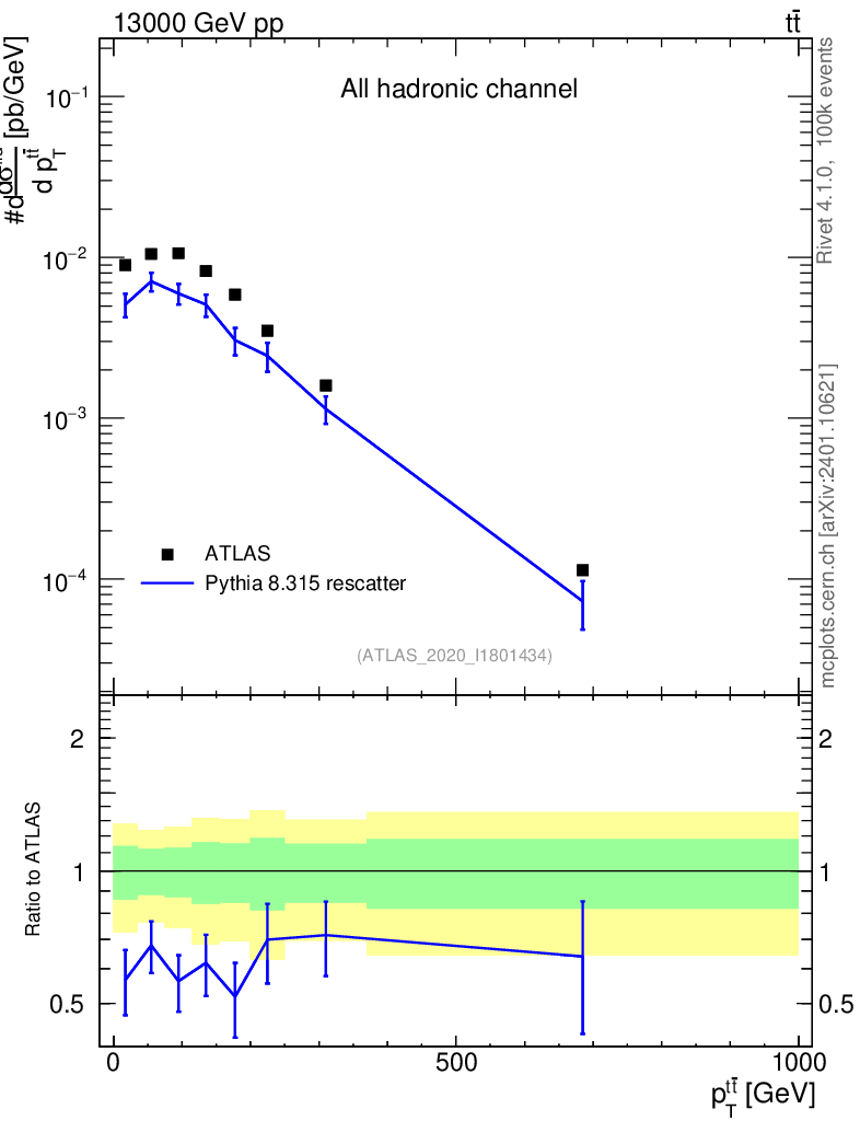 Lines: data, pythia8 8.315 rescatter |