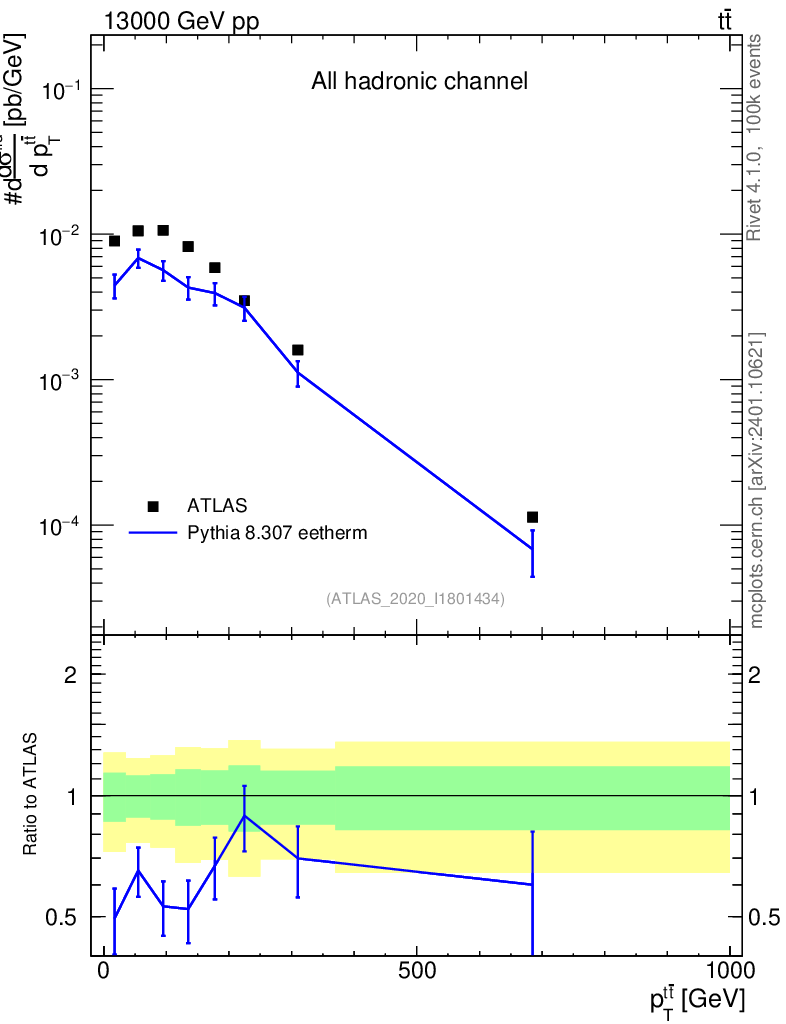 Lines: data, pythia8 8.307 eetherm |
