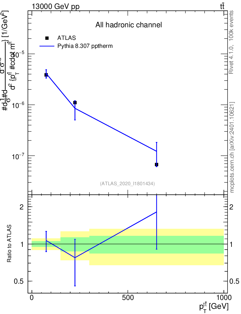 Lines: data, pythia8 8.307 pptherm |