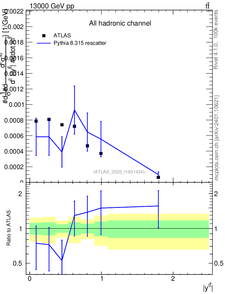 Lines: data, pythia8 8.315 rescatter |