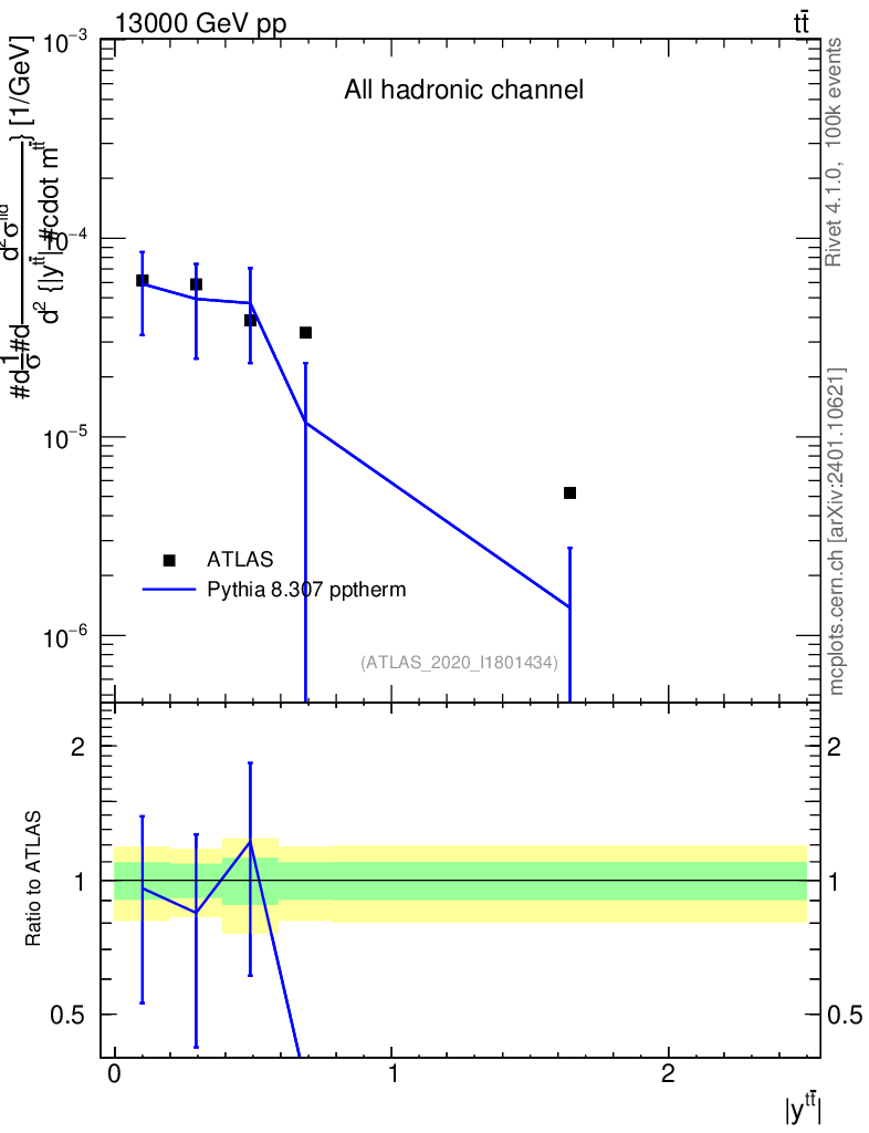 Lines: data, pythia8 8.307 pptherm |