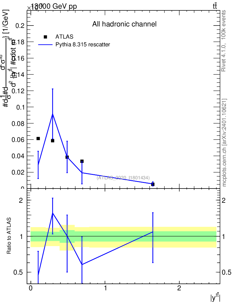 Lines: data, pythia8 8.315 rescatter |