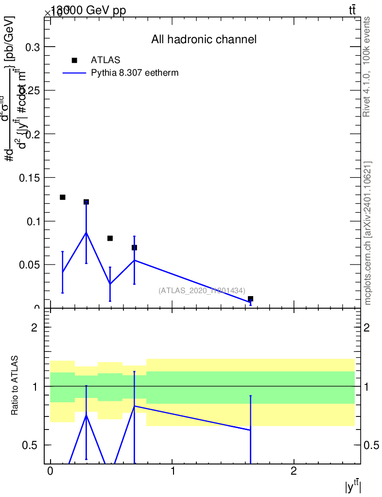 Lines: data, pythia8 8.307 eetherm |