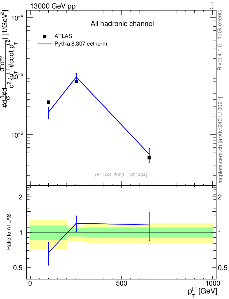 Lines: data, pythia8 8.307 eetherm |