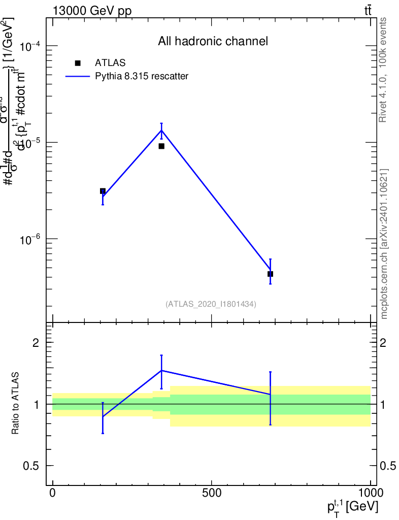 Lines: data, pythia8 8.315 rescatter |