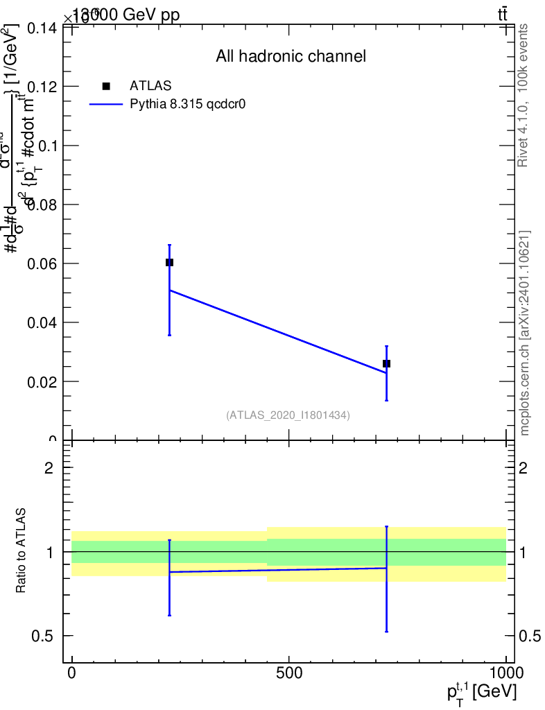 Lines: data, pythia8 8.315 qcdcr0 |