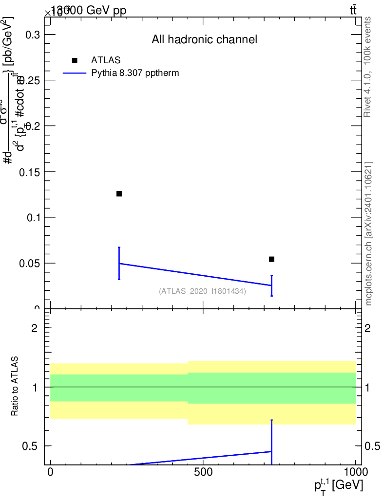 Lines: data, pythia8 8.307 pptherm |