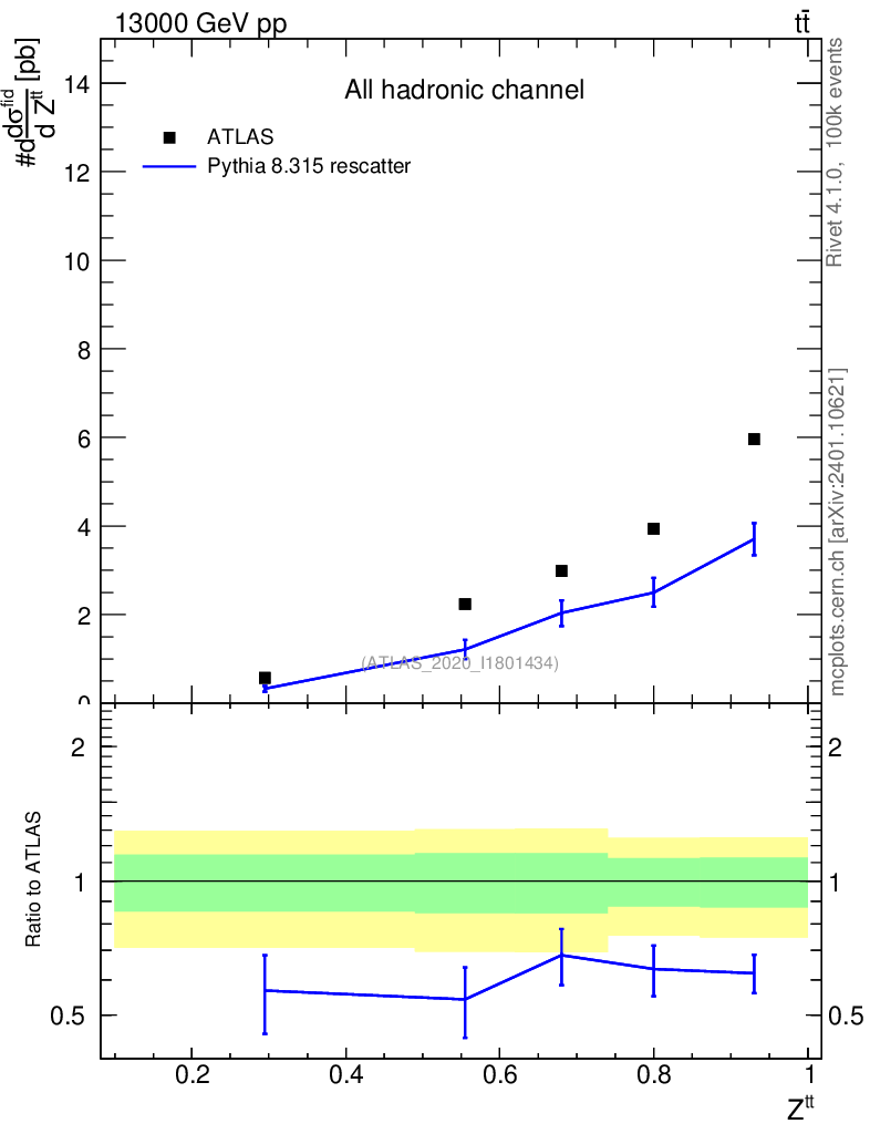Lines: data, pythia8 8.315 rescatter |