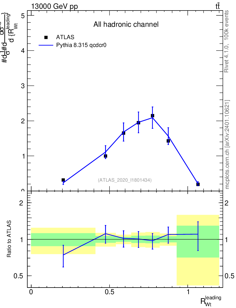 Lines: data, pythia8 8.315 qcdcr0 |