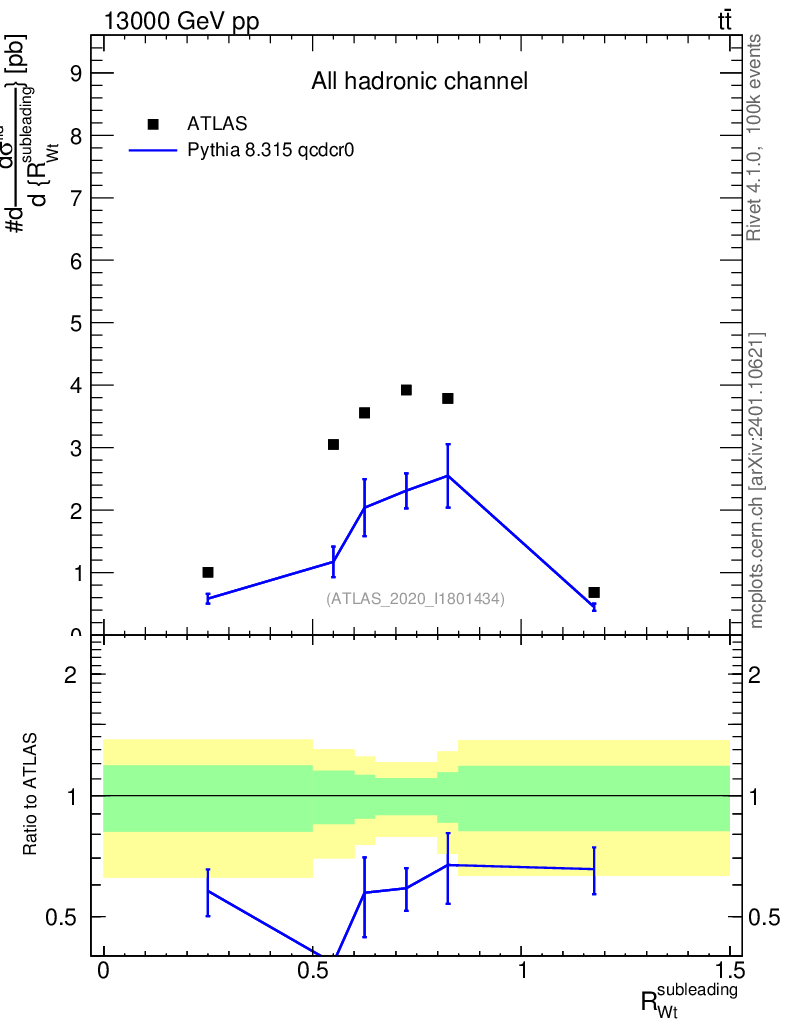 Lines: data, pythia8 8.315 qcdcr0 |