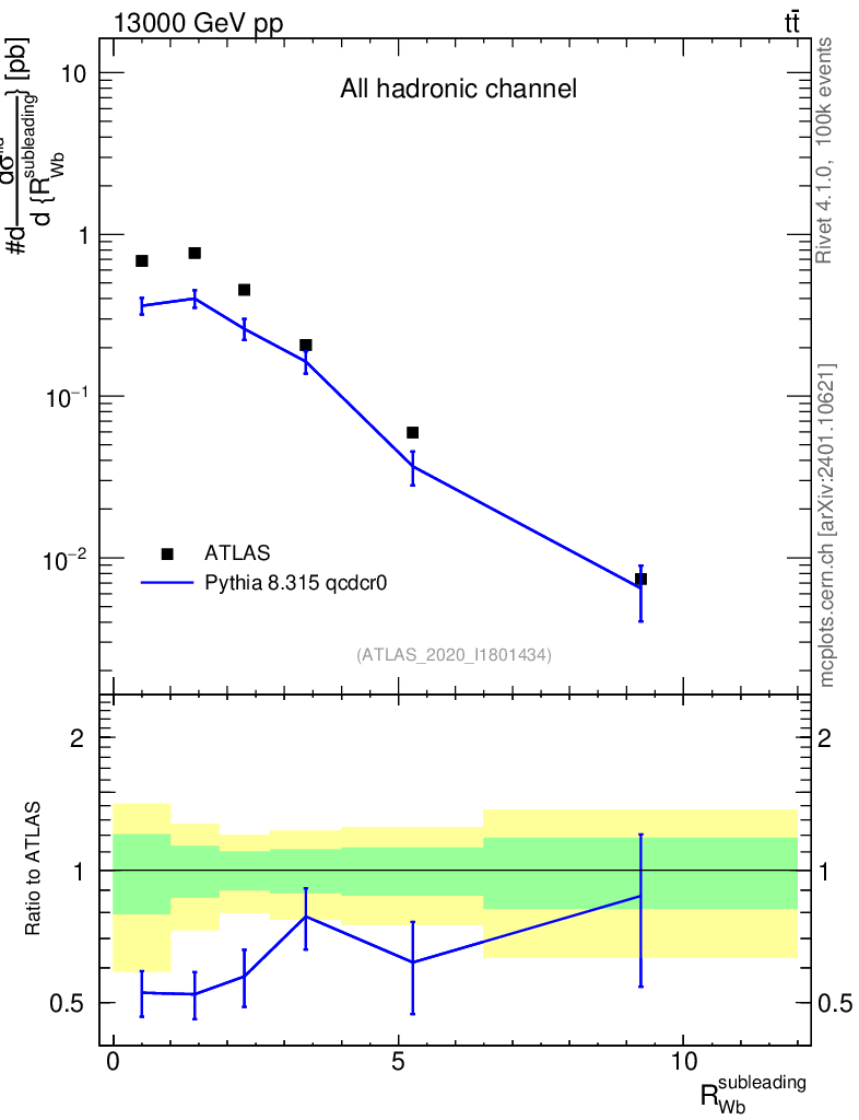 Lines: data, pythia8 8.315 qcdcr0 |